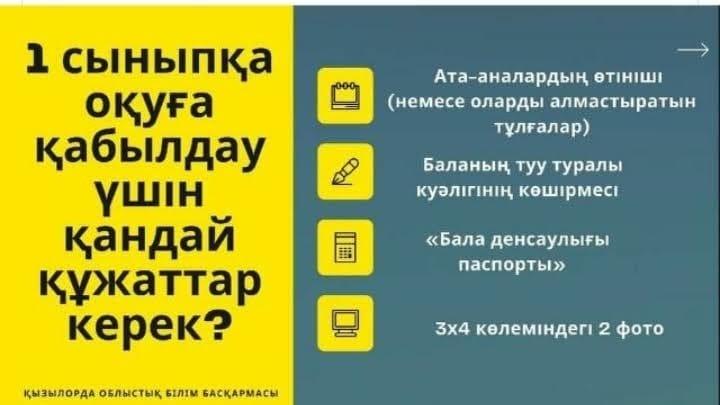 Бірінші сынып оқушыларының құжаттарын қабылдау 1 сәуірде басталып, 1 тамызға дейін жалғасады. Бұл – білім беру процесіне қатысушыларға ыңғайлы болу үшін қабылданған шешім.